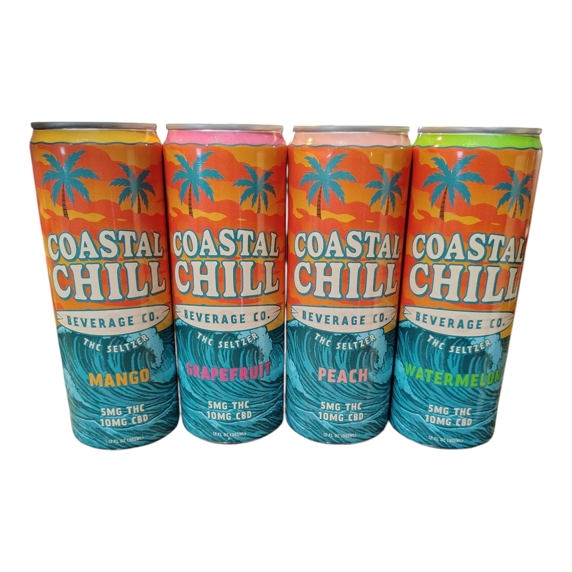 Find your chill with this variety 4 pack featuring one can each of Grapefruit, Mango, Peach and Watermelon. Each can has 5mg THC and 10mg CBD. 100% natural ingredients with no artificial flavors, colors, or preservatives. Gluten free, vegan, alcohol free, non-gmo. 70 calories.